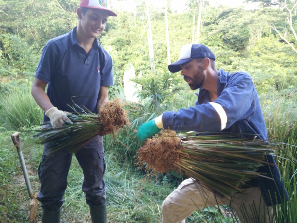 Then since 2016 at Finca Yantza while exploring for solutions to control the steep farm soil and top soil from the erosion due to tropical rainfall. I stumbled again over this Vetiver grass. Later educating myself on Vetiver Network International I discovered 1’000 of other use-cases for the vetiver grass.
