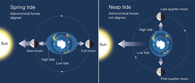Moon phase is reflected by sea tide activity. The moon’s gravitational pull generates something called the tidal force. The tidal force causes the Earth and its oceans to bulge out on the sides closest to and farthest from the moon. These water bulges are caused by high tides. On a large scale, everything is interconnected. By the way, if you want your nails or hair to grow strong, do some research on the moon phase as well.