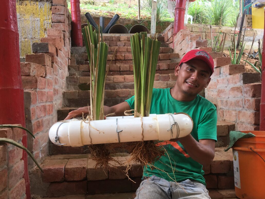 Then since 2016 at Finca Yantza while exploring for solutions to control the steep farm soil and top soil from the erosion due to tropical rainfall. I stumbled again over this Vetiver grass. Later educating myself on Vetiver Network International I discovered 1’000 of other use-cases for the vetiver grass.